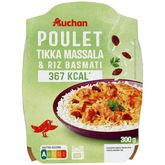 Ingrédients : Riz basmati cuit (eau, riz basmati) 42%, viande de poulet cuite traitée en salaison [viande de poulet, eau, saumure (amidon de manioc, sel, dextrose)] 24,7%, eau, crème fraîchelégère (LAIT), oignons 2,8%, double concentré de tomates, mélange aromatique [épices et plantes aromatiques, tomate déshydratée, sel, saccharose,arômes naturels, colorant : extrait de paprika] 1,7%, purée de tomates, raisins(raisins, huile de graines de coton) 1,2%, poudre de LAIT, ail, MOUTARDE àl'ancienne (eau, graines de MOUTARDE, vinaigre d'alcool, sel), coriandre 0,7%,amidon de maïs, gingembre, OEUFS entiers, farine de BLÉ, noix de coco râpée, huile de tournesol, cumin, sel, épice paprika, piment. Pourcentages exprimés sur le total de la recette. Élaboré à partir de poulet et de lait origine France Traces éventuelles de soja et céleri.