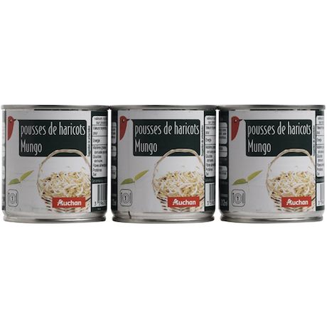 Ingrédients : Eau, pousses de haricots Mungo, sucre, vinaigre de vin blanc, sel, acidifiant : acide citrique, antioxydant : acide ascorbique, arôme estragon