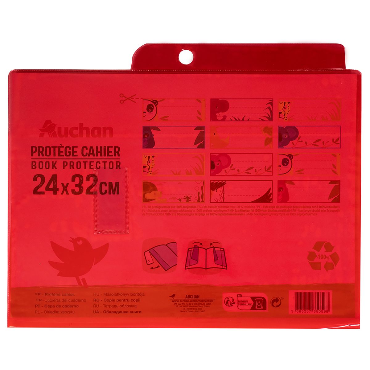 Protège cahier 24x32cm à rabats cristal rouge translucide