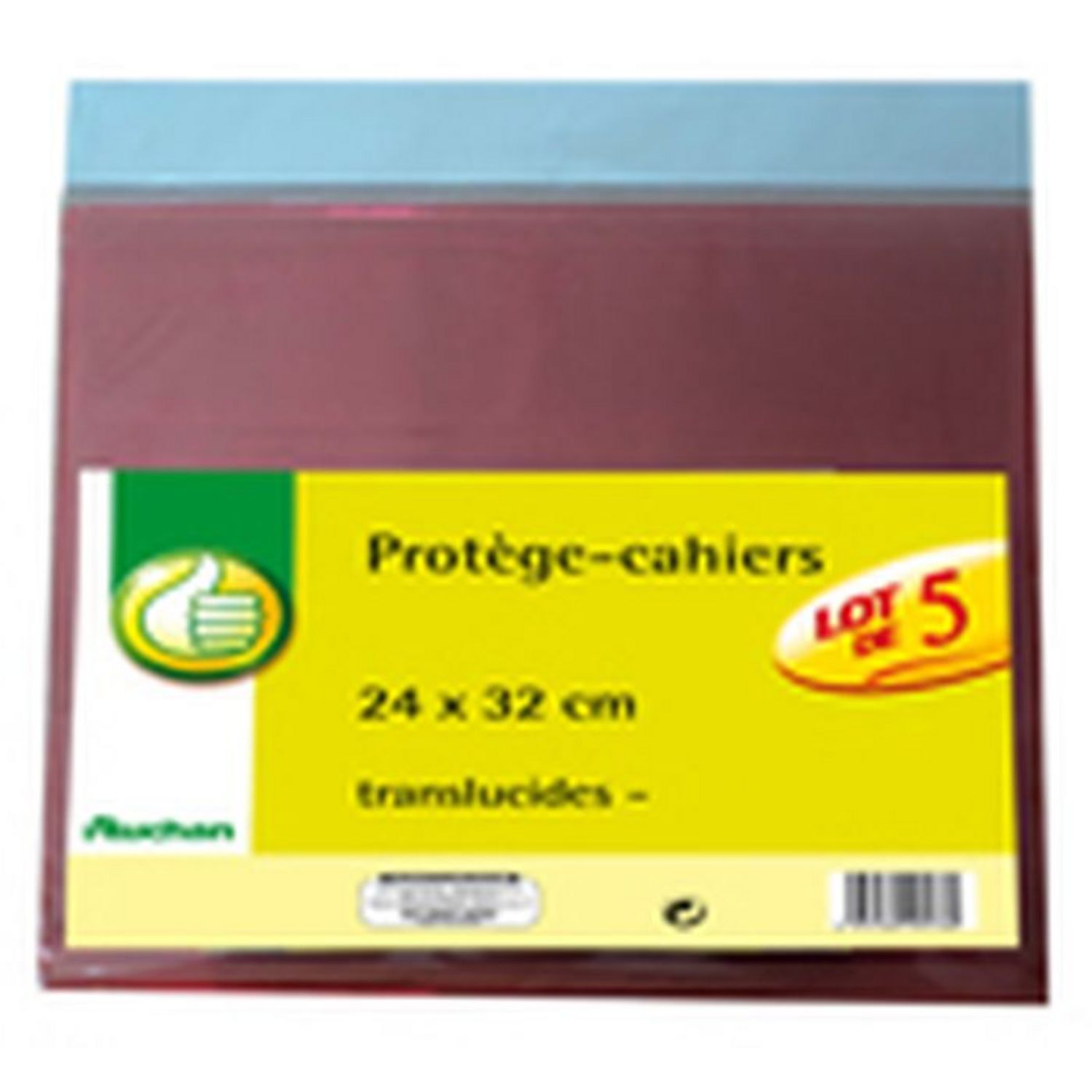 5 protèges cahier translucide coloris assortis dimension 24x32cm