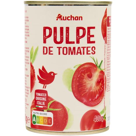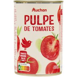 Ingrédients : Pulpe de tomates, jus de tomates, correcteur d'acidité : acide citrique. Tomates origine Italie.