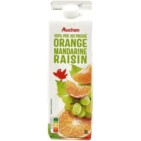 Ingrédients : Jus d'orange 47%, de mandarine 25% et de raisin blanc 25%, pulpe d'orange 3%