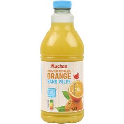 Jus d’orange sans pulpe, flash pasteurisé, réfrigéré.