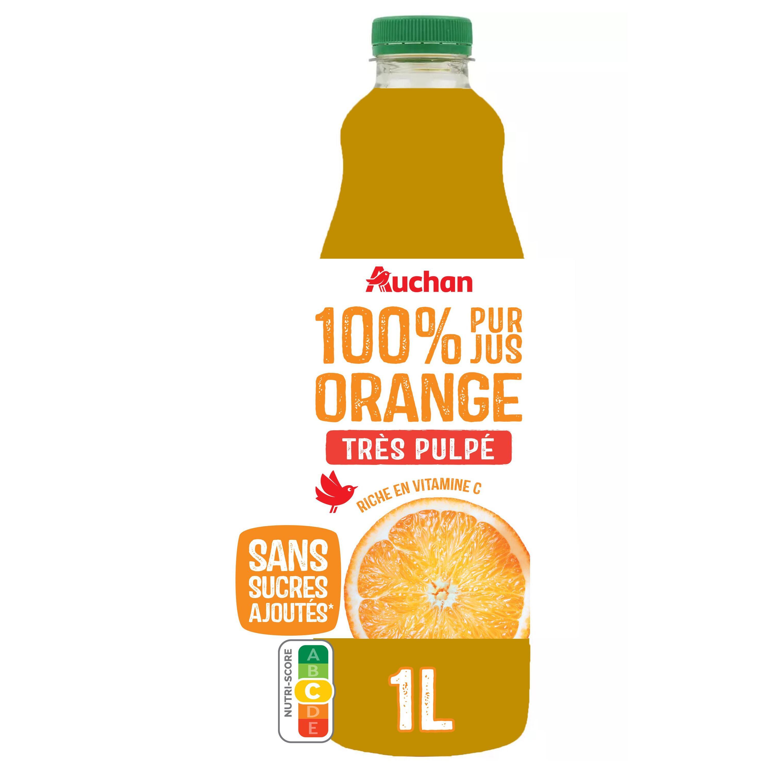 En principe je préfère acheter un jus de fruits bio, Pour ce pur jus, je me suis laissée tentée par l'indication "Pur jus très pulpé" . Effectivement il contient de la pulpe mais pas forcément beaucoup plus qu'un autre "avec pulpe". Il est 100% pur fruit c'est çà l'important, et il a très bon goût, peu sucré, c'est parfait.