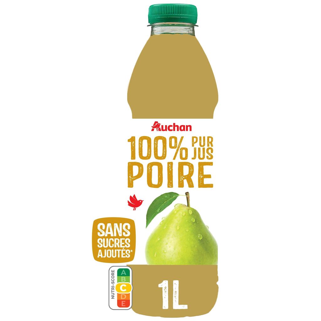 Comparé à la dernière fois que j'ai acheté ce produit, le jus est très très clair ! on a l'impression de boire de l'eau et pas du jus de poire ! Auchan se moque du consommateur en faisant des produits de mauvaise qualité afin de demander le même prix je suppose ! c'est inadmissible !!!