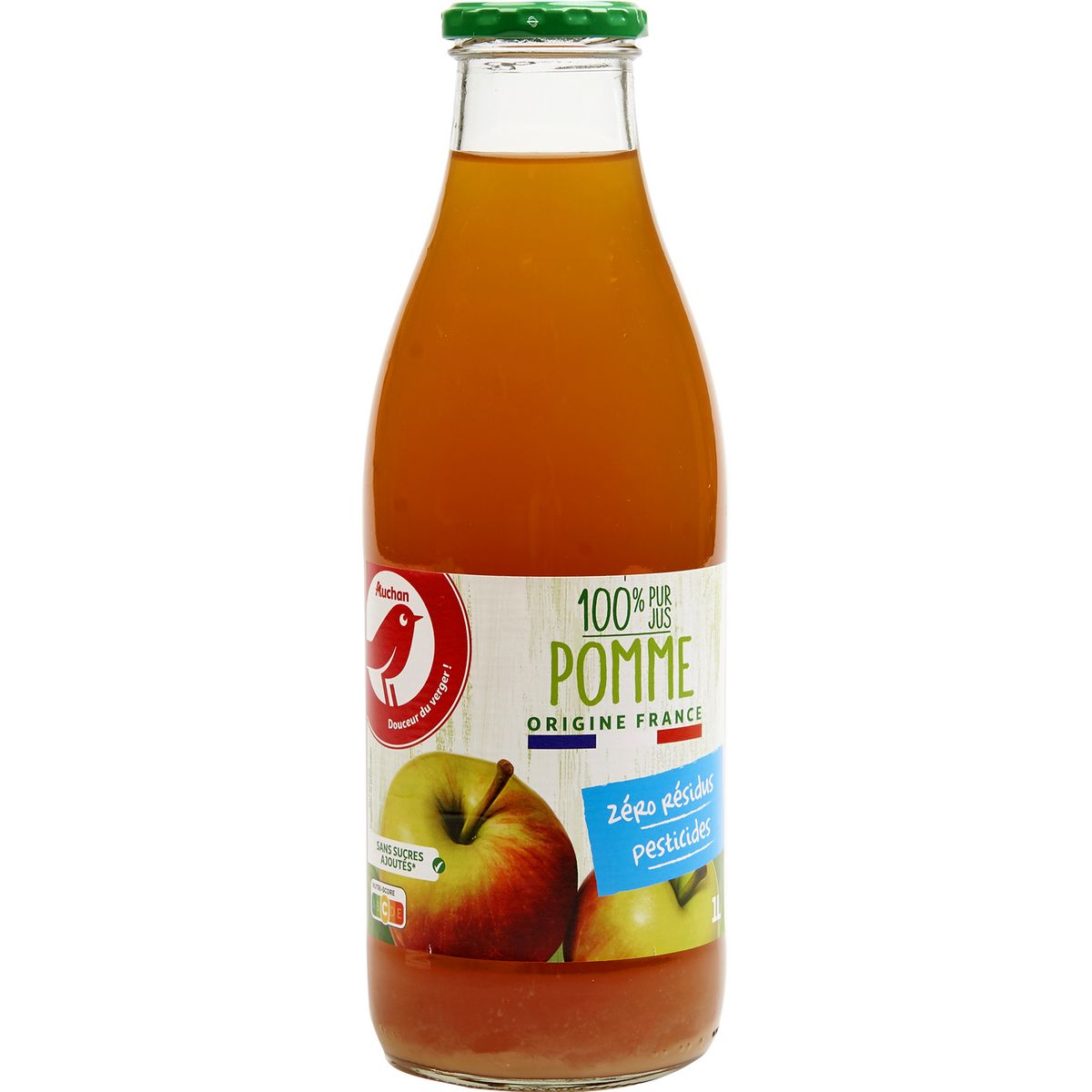 Pur jus de pomme zéro résidu pesticide bouteille verre