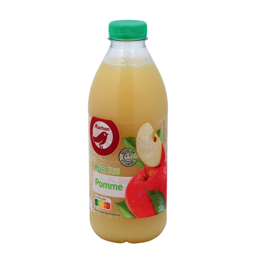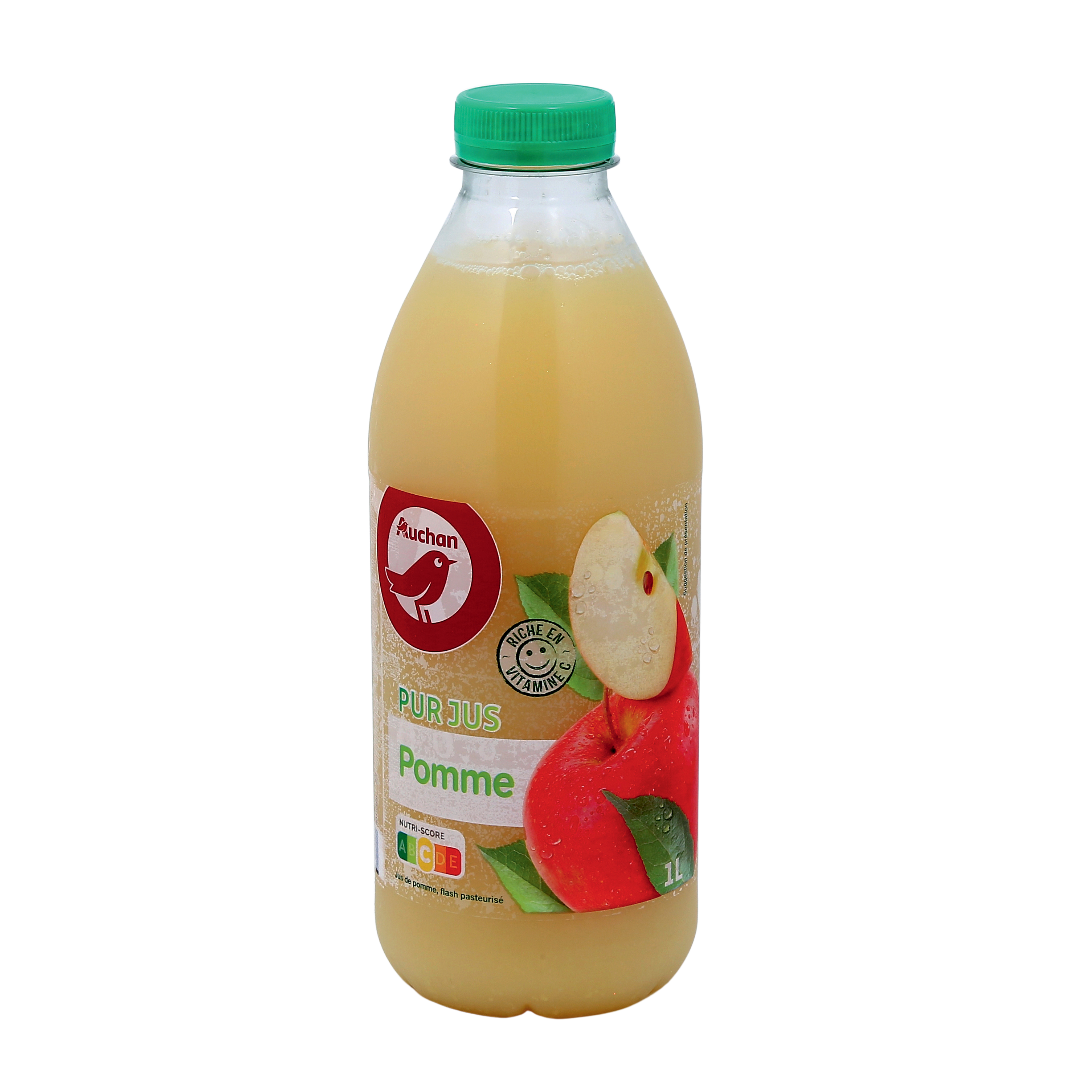 Jus de pomme naturellement trouble, flash pasteurisé, réfrigéré, riche en vitamine C.