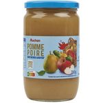 Ingrédients : purée de pommes 88,3% (origine France), purée de poires concentrée 11% (origines Italie et/ou Espagne et/ou France), arôme naturel de poire, antioxydant : acide ascorbique.