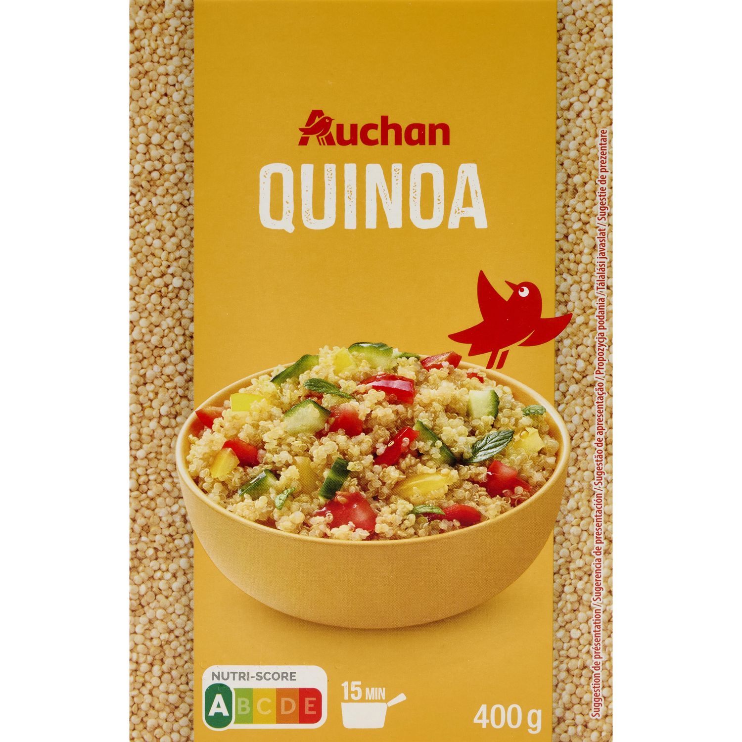 Ingrédients : 100% quinoa blond. Traces éventuelles de céréales pouvant contenir du gluten, du lupin, du soja et de la moutarde
