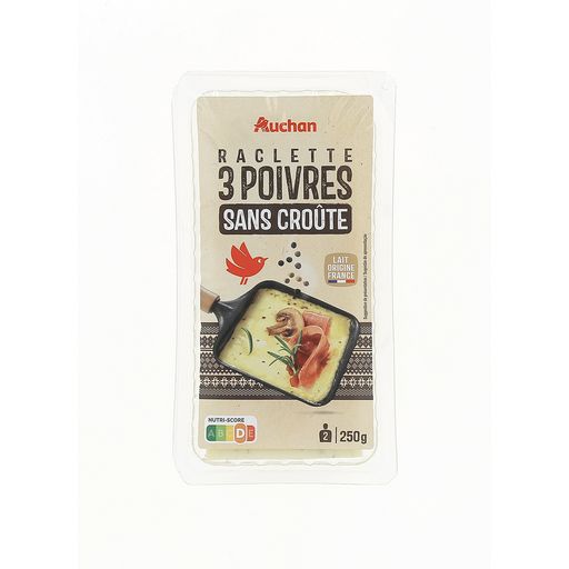 La raclette au poivre Auchan est excellente! Je l'achète systématiquement pour les soirées raclettes mais aussi pour les burgers et d'autres préparations (ex: Philly Cheesesteak avec raclette fumée + raclette au poivre + cheddar = le meilleur sandwich du monde)