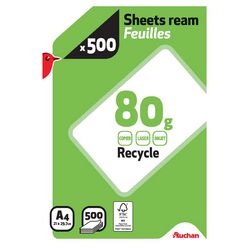Ramette de papier blanc recyclé A4 500 feuilles 80gr