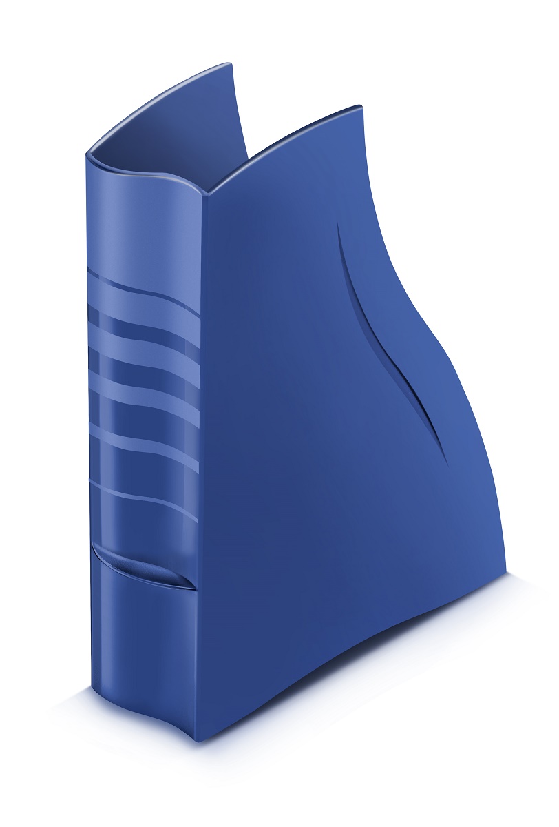 Range revues en polystyrène bleu. Introduction et saisie des documents très faciles grâce aux parois pleines et au seuil très bas. Tirette de préhension facilitant la prise en main. Grande capacité : accepte les documents jusqu’au format 24 x 32 cm et les pochettes à élastique, largeur de 8 cm