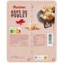 Ingrédients : Filet de poulet (87%), eau, sel, sirop de glucose, dextrose, acidifiants : lactate de potassium, acétates de sodium gélifiant : algues Euchema transformées antioxydant : ascorbate de sodium conservateur : nitrite de sodium. Elaboré à partir de poulet origine UE.