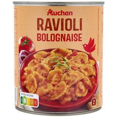 C'est la première fois que je prenais ces raviolis à la bolognaise, par erreur d'ailleurs, et je ne suis pas fan du tout de la texture épaisse et pâteuse de la sauce. Je préfère les raviolis Auchan pur boeuf à la sauce tomate simple.