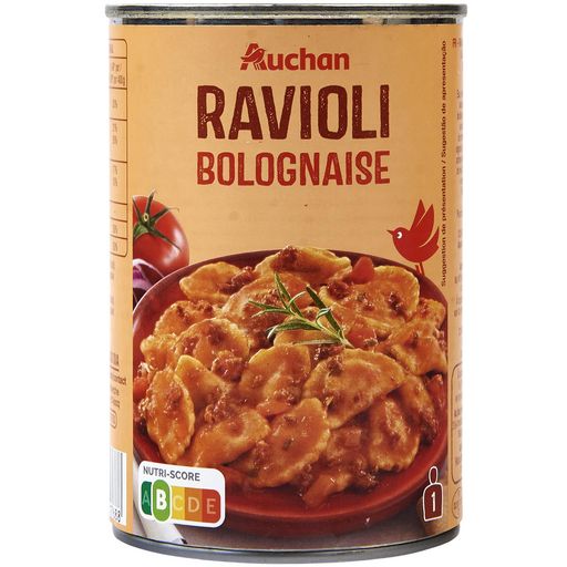 C'est la première fois que je prenais ces raviolis à la bolognaise, par erreur d'ailleurs, et je ne suis pas fan du tout de la texture épaisse et pâteuse de la sauce. Je préfère les raviolis Auchan pur boeuf à la sauce tomate simple.