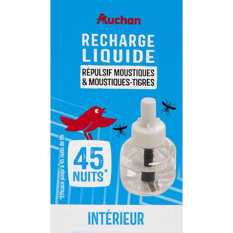Recharge liquide pour protection efficace contre les moustiques et moustiques tigres en les repoussant jusqu'à 45 nuits de 8h (pour une pièce jusqu'à 30 m³).