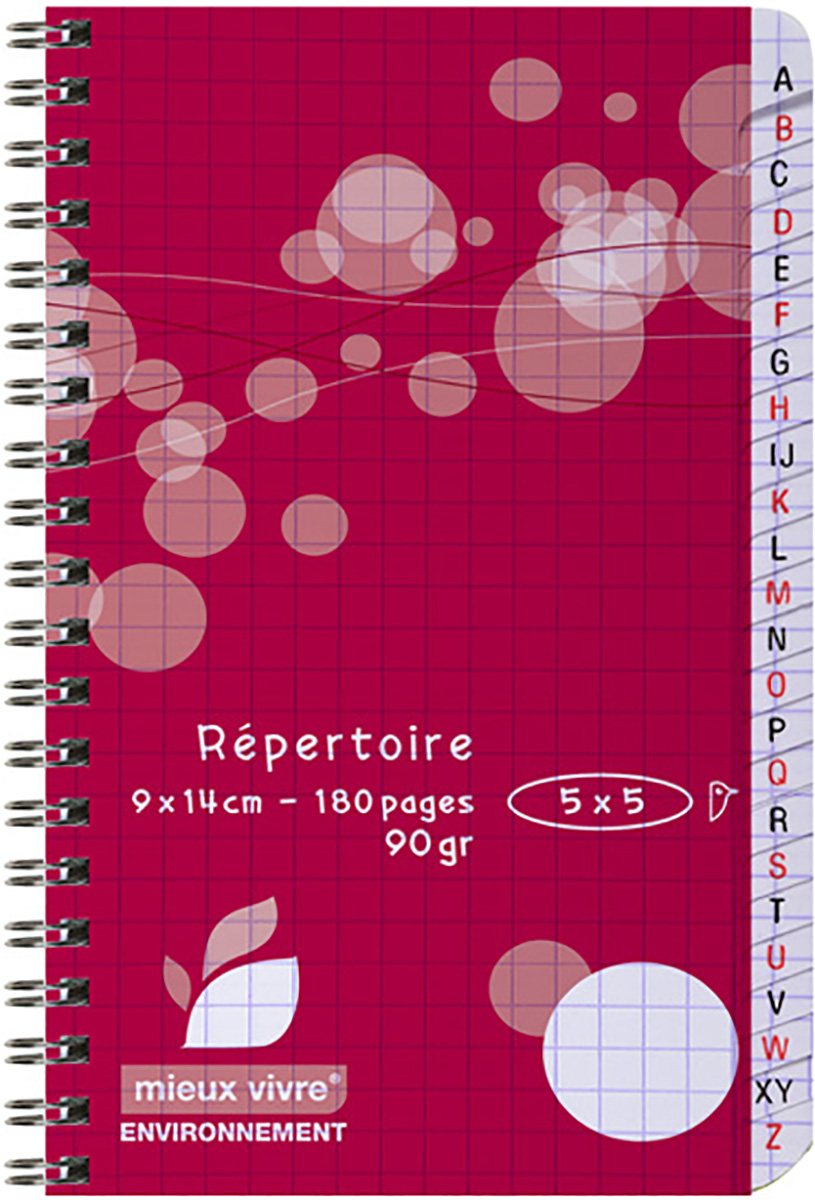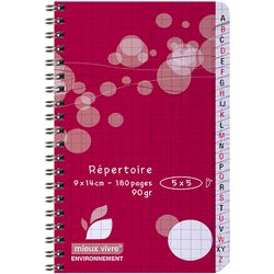 Répertoire à spirale. 180 pages. 90g. Papier certifié NF. Coloris rouge.