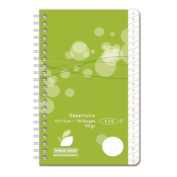 Répertoire polypro 9x14cm 180 pages à spirale petits carreaux 5x5 vert