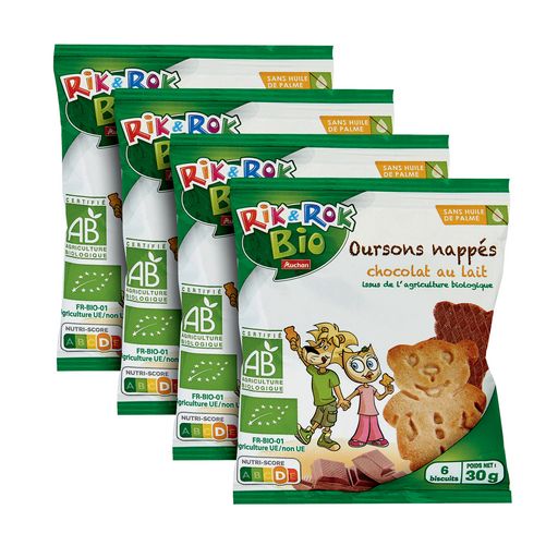 Biscuits bio oursons nappés de chocolat au lait