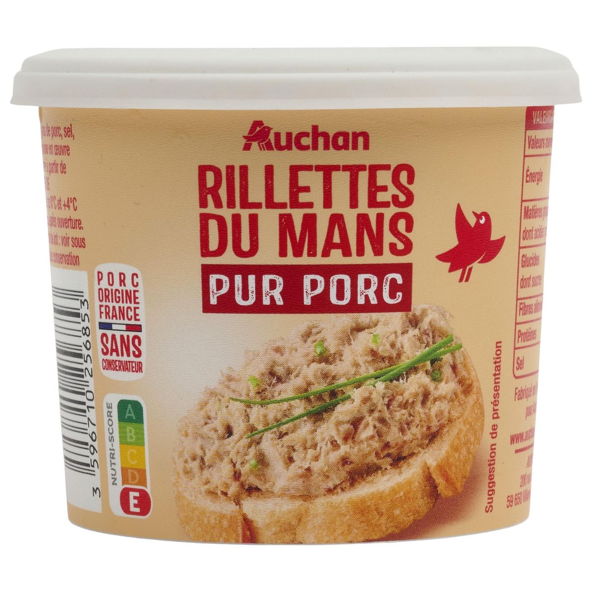 Bonjour, Merci d’avoir partagé votre avis sur notre produit AUCHAN Rillettes du Mans pur porc 110g. Nous sommes désolés d’apprendre que ce produit n’a pas répondu à vos attentes, notamment en ce qui concerne sa texture et son goût. Votre retour est important pour nous et sera transmis à nos équipes afin d’évaluer la qualité et d’envisager des améliorations. Bien cordialement,