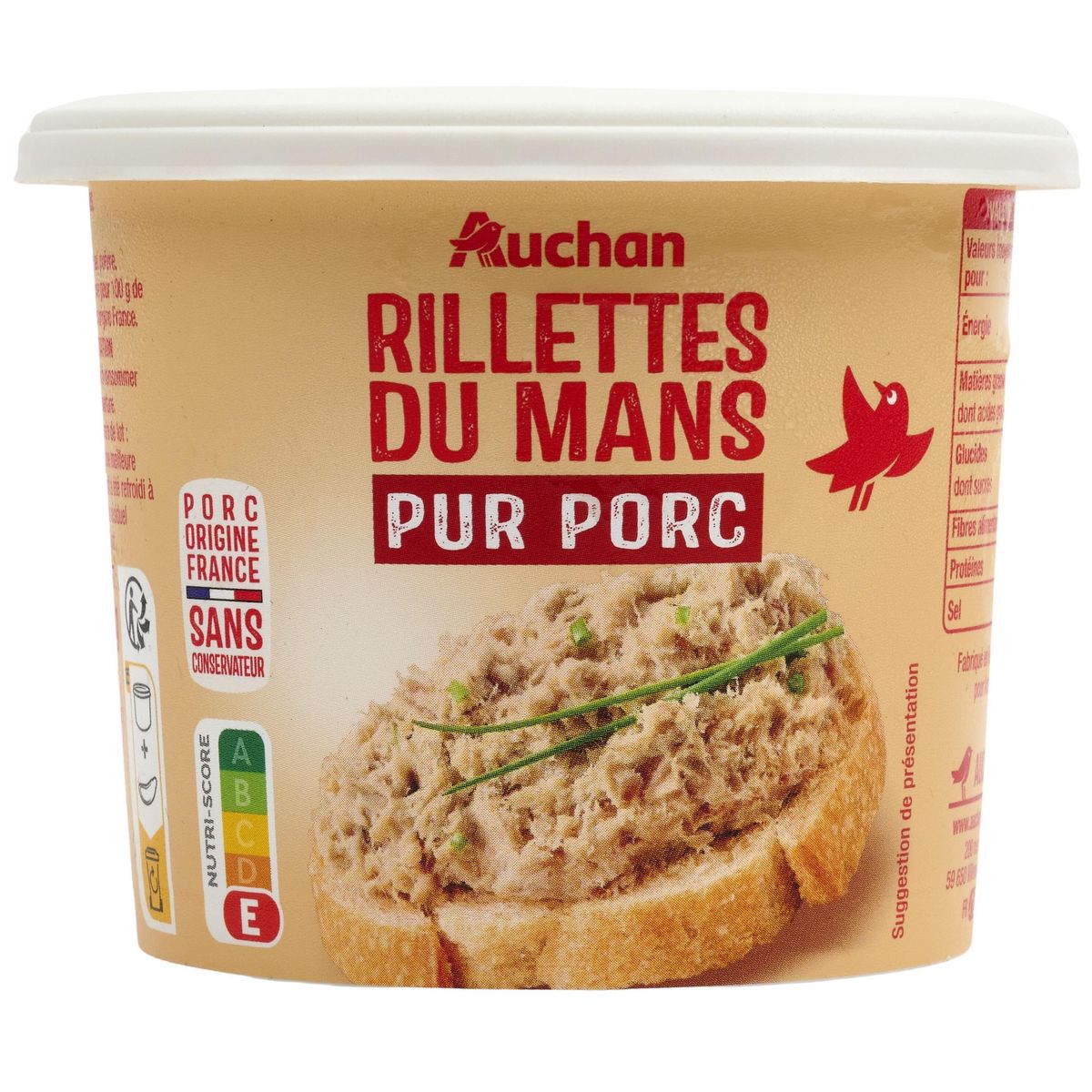 Recette simple et traditionnelle avec du porc français (viande et gras), du sel et du poivre. Sans conservateur. Un plaisir Sarthois à tartiner sur du pain frais ou grillé