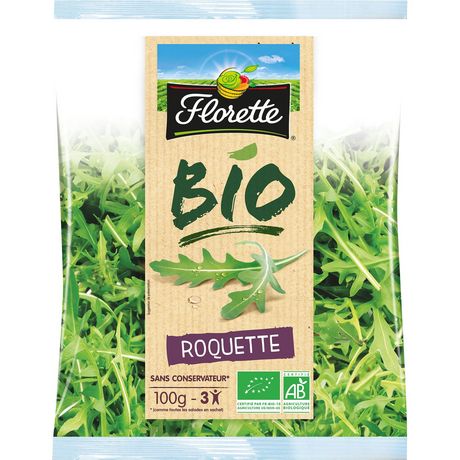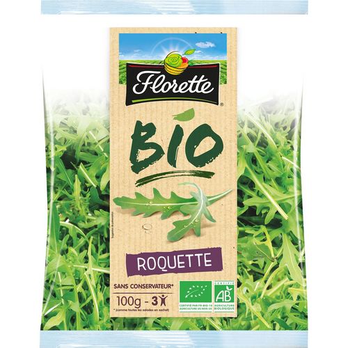 Salade prête à l'emploi La Roquette BIO Florette respecte les méthodes de culture de l’Agriculture Biologique. Avec sa saveur corsée légèrement moutardé, elle donnera du caractère à vos plats. A utiliser en salade, cuisinée en pesto ou sur une pizza.