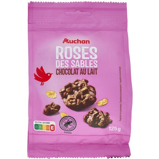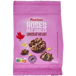 Bonjour, Nous vous remercions d'avoir pris le temps de nous partager votre avis sur les Roses des sables au chocolat au lait 125g AUCHAN. Nous sommes désolés que nos Roses des sables ne vous aient pas convaincu. Nous comprenons que vous attendiez un produit plus croustillant et moins sucré. Nous prenons en compte vos remarques pour améliorer nos recettes et nous espérons que vous nous donnerez l'occasion de vous apporter entière satisfaction avec d'autres produits. Nous vous souhaitons une très bonne journée !
