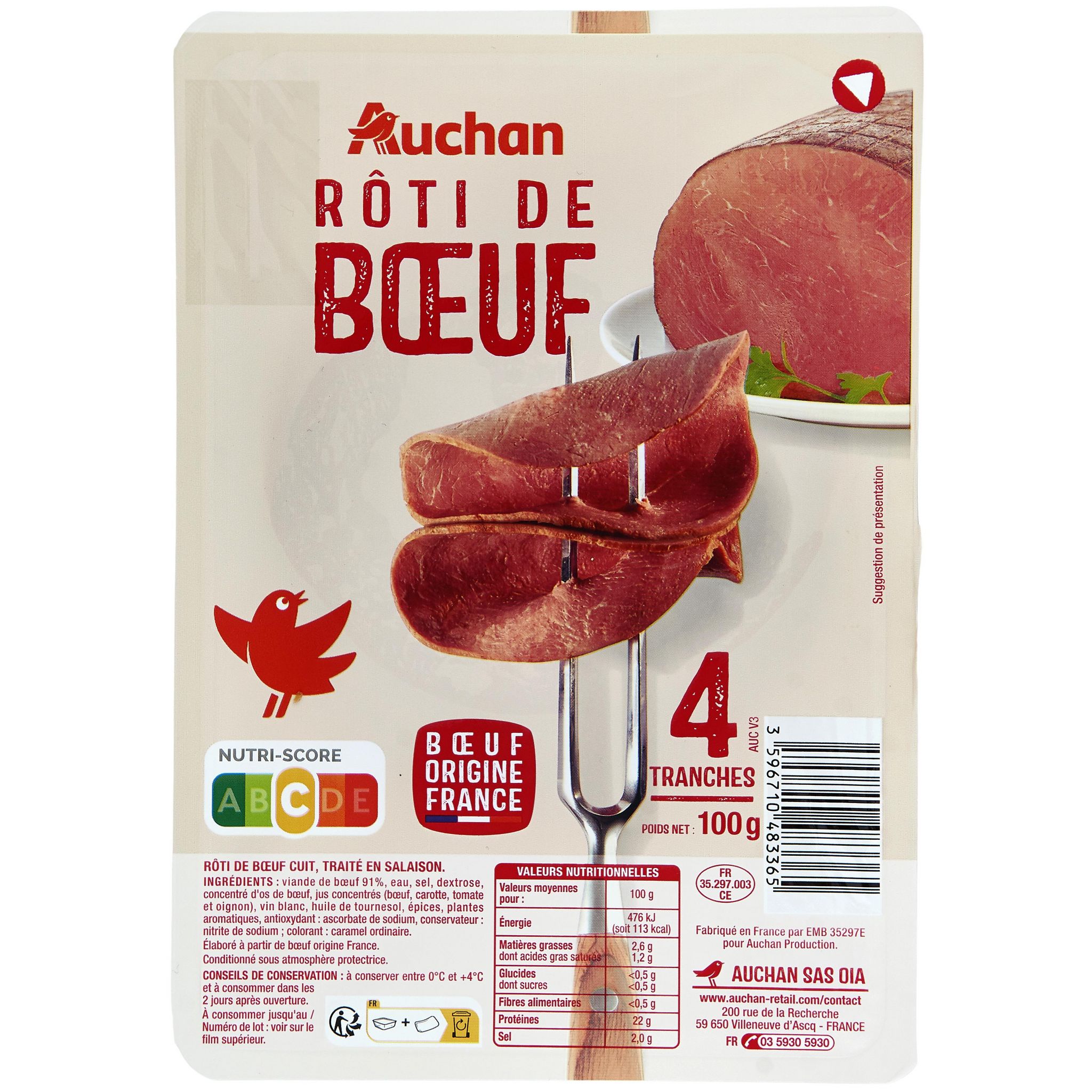 Le roti de boeuf Auchan est fait a partir d'une viande tendre ce qui lui confère une texture moelleuse.