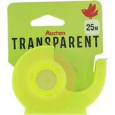 Rouleau ruban adhésif 25m transparent avec dévidoir jaune