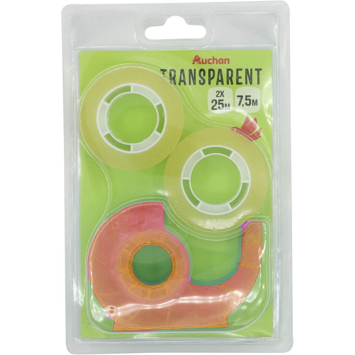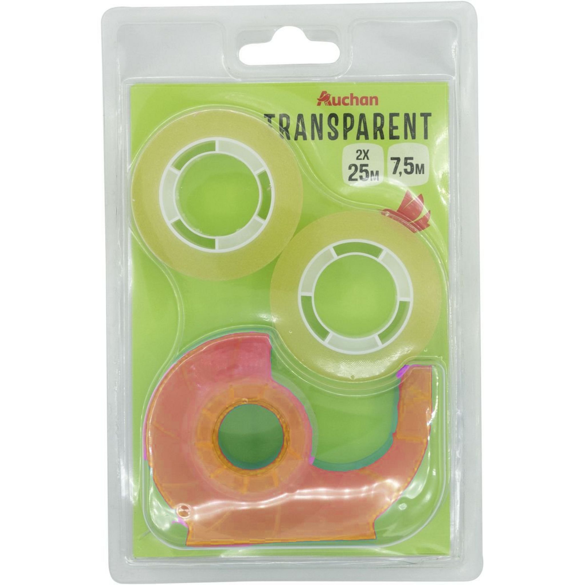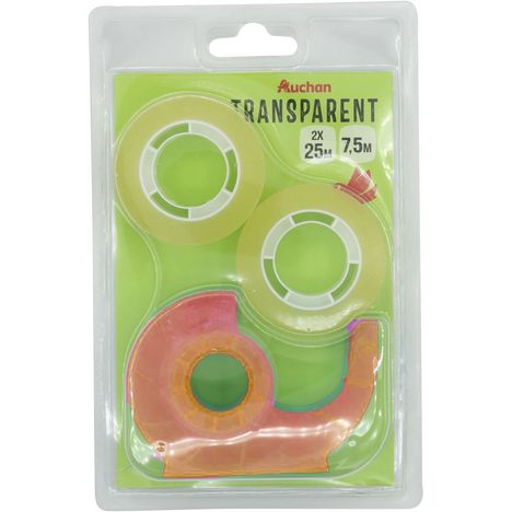 En savoir +Facile d'utilisation, ce dévidoir coloré et son rouleau de scotch sont un indispensable à la maison comme au bureau. Il offre une capacité de 7,5 m de ruban adhésif. La lame métallique du dévidoir permet de couper le ruban rapidement et en un seul geste. Le dévidoir est vendu avec un rouleau intégré et 2 rouleaux d’adhésifs supplémentaire de 25 M pour pouvoir les remplacer après utilisation totale.