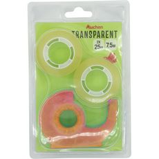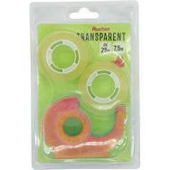 Rouleau ruban adhésif 25m transparent avec dévidoir orange + 2 rouleaux