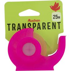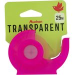 Rouleau ruban adhésif 25m transparent avec dévidoir rose