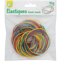 En savoir +Accessoires pratique au quotidien, au bureau ou à la maison, ces élastiques en caoutchouc sont toujours utiles pour assembler des documents ou du courrier sans les plier mais également pour maintenir ensemble de petits objets, fermer tous types de produits ou pour le bricolage. Résistants, ils se déclinent dans une gamme de 4 couleurs intemporelles et trouveront facilement leur place dans le tiroir d’un bureau ou autour d’un pot à crayon pour les avoir toujours à portée de main. Diamètre d’un élastique : 6.5 cm. Contenance : 50 g. Couleurs : rouge – bleu – jaune – vert.