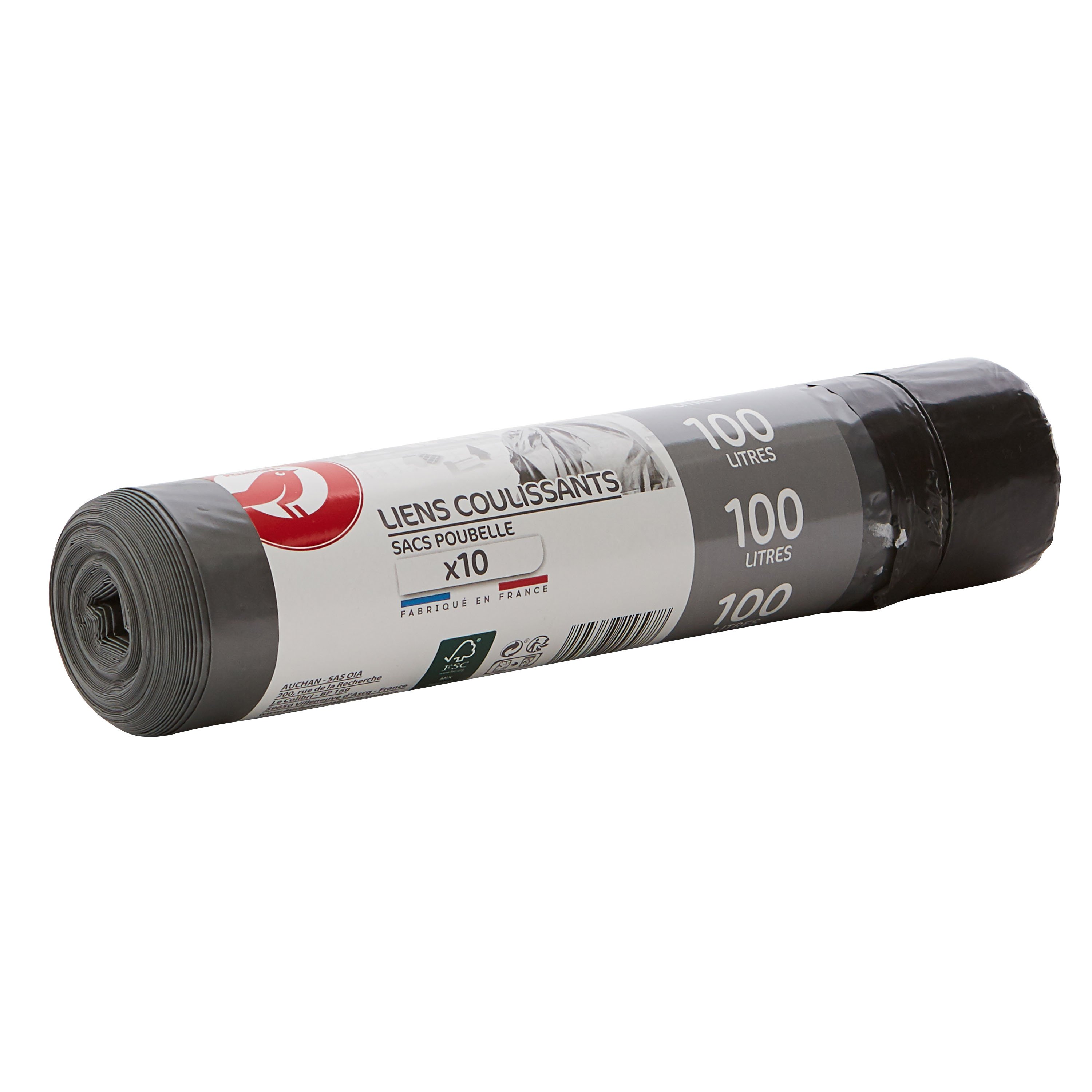 AUCHAN SACS POUBELLES AVEC CORDON 100L 10PCS