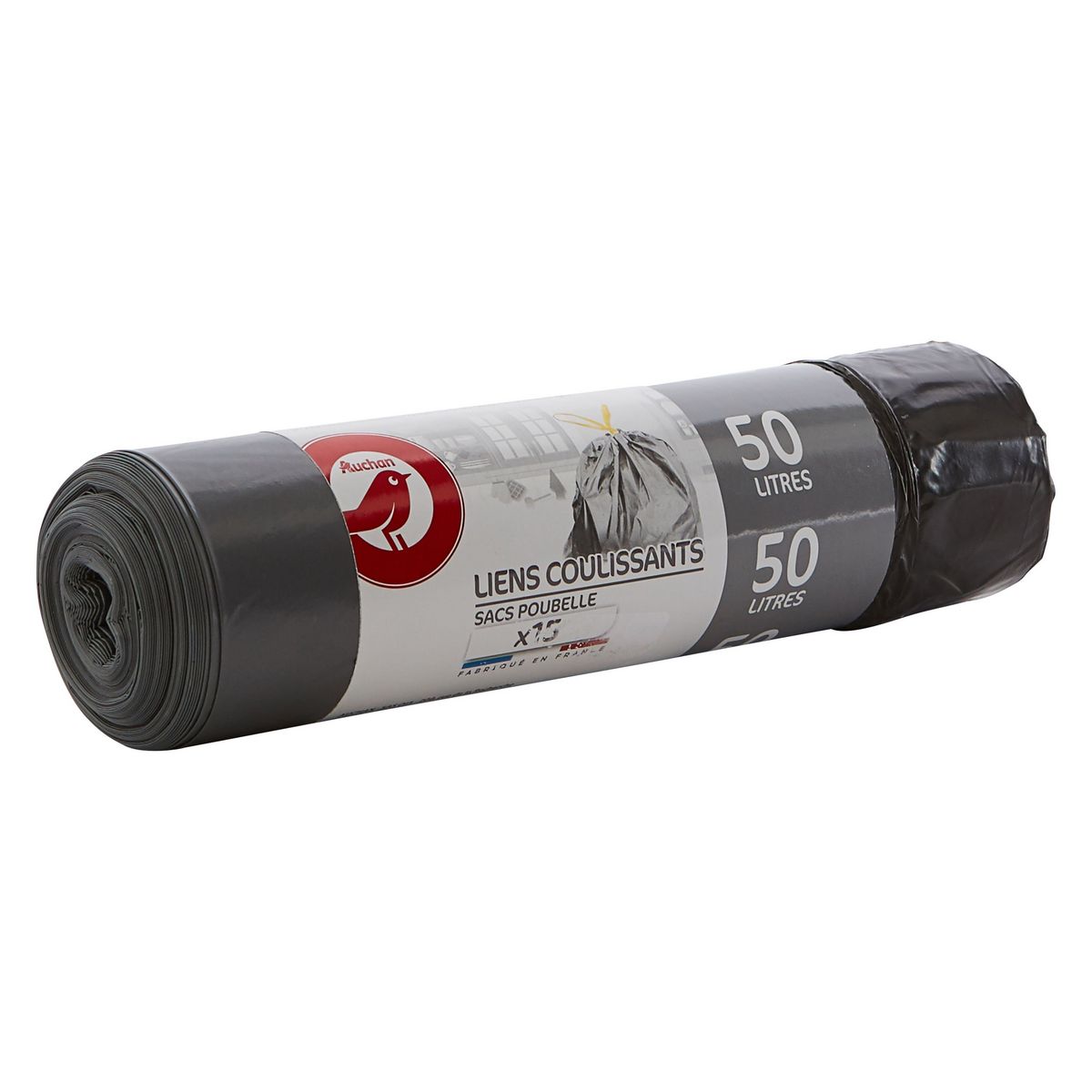 AUCHAN SACS POUBELLES AVEC CORDON 50L 15PCS