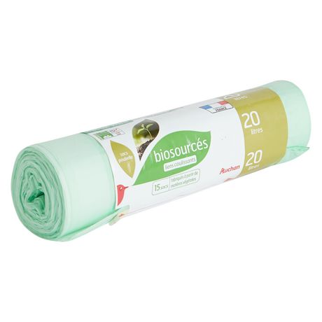 AUCHAN SAC POUBELLE ECO AVEC CORDON 20L 15PCS