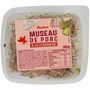 Ingrédients : Museau de porc 52% [pièces de tête de porc (origine UE), eau, épices (poivre, girofle, muscade), vinaigre d'alcool, sel, dextrose, acidifiants : acide citrique, acide lactique antioxydant : érythorbate de sodium conservateur : nitrite de sodium], eau, cornichon 9,1%, oignon 5,7%, huile de colza, vinaigre d'alcool, MOUTARDE (eau, graine de MOUTARDE, vinaigre d'alcool, sel), persil déshydraté 0,4% épaississant : gomme xanthane poivre blanc, sel. Pourcentages exprimés sur le total de la recette. Traces éventuelles de céleri, céréales contenant du gluten, crustacés, fruits à coque, graines de sésame, lait, œuf, poissons et soja.