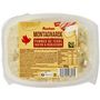 Ingrédients : Pommes de terre 61% (pommes de terre 55%, eau, sel, antioxydant : DISULFITE de sodium, stabilisant : pyrophosphate de sodium vinaigre), bacon cuit fumé choix 10% [viande de porc (origine UE) 9%, sel, dextrose, arôme de fumée, acidifiant : acide citrique, antioxydant : érythorbate de sodium, conservateur : nitrite de sodium], huile de colza, reblochon pasteurisé 5% [LAIT cru de vache (origine France), sel, FERMENTS LACTIQUES, présure, colorant de croûte : norbixine de rocou], oignons, eau, vinaigre d’alcool, ciboulette, arôme (contient LAIT), MOUTARDE de Dijon (eau, graines de MOUTARDE, vinaigre d’alcool, sel), OEUF entier en poudre, sel, épaississant : gomme xanthane, conservateur : sorbate de potassium. Pourcentages exprimés sur le total de la recette. Traces éventuelles de gluten, céleri, crustacés, poisson, soja et fruits à coque.