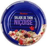 Ingrédients : Pomme de terre 26%, thon (poisson) 20%, poivrons rouges 13%, haricots verts 8%, tomates 7.5%, eau, oignons 4.3%, olives noires 3.3% (olives, sel, fixateur de couleur : gluconate ferreux), huile de colza, vinaigre d'alcool, jus de citron, huile d'olive vierge extra, basilic 0.5%, sel, ail déshydraté épaississants : gomme xanthane et gomme guar poivre.Traces éventuelles de blé, d'oeufs, de lait et de moutarde.