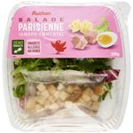 Salade composée de salades, oeuf dur, jambon cuit supérieur, emmental et croûtons. Vinaigrette allégée* en matières grasses aux herbes.