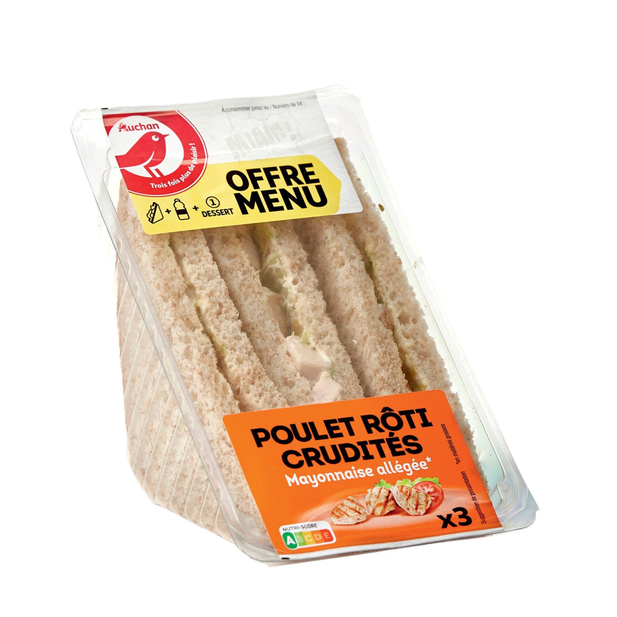 Sandwich triple poulet rôti crudités et mayonnaise allégée
