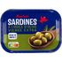 Ingrédients : Sardines (poissons) (Sardina pilchardus), huile d'olive vierge extra 19% (Origine : UE et non UE (Maroc ou Tunisie)), sel.Sardines pêchées en océan Atlantique Centre-Est