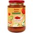 Ingrédients : tomates pelées concassées 57%, eau, oignons 7%, double concentré de tomates 6.0%, courgette 4.3%, huile de colza, poivrons rouges 3.0%, poivrons verts 3.0%, amidon modifié de maïs, sucre, préparation aromatisante [sel, sirop de glucose, dextrose, légumes (oignon, carotte, poireau), arôme naturel, huile de tournesol, épices (curcuma, poivre, macis), antioxydant: extrait de romarin], arôme naturel d'ail, sel, thym, extrait d'épice, persil, jus de citron concentré. Tomate origine UE