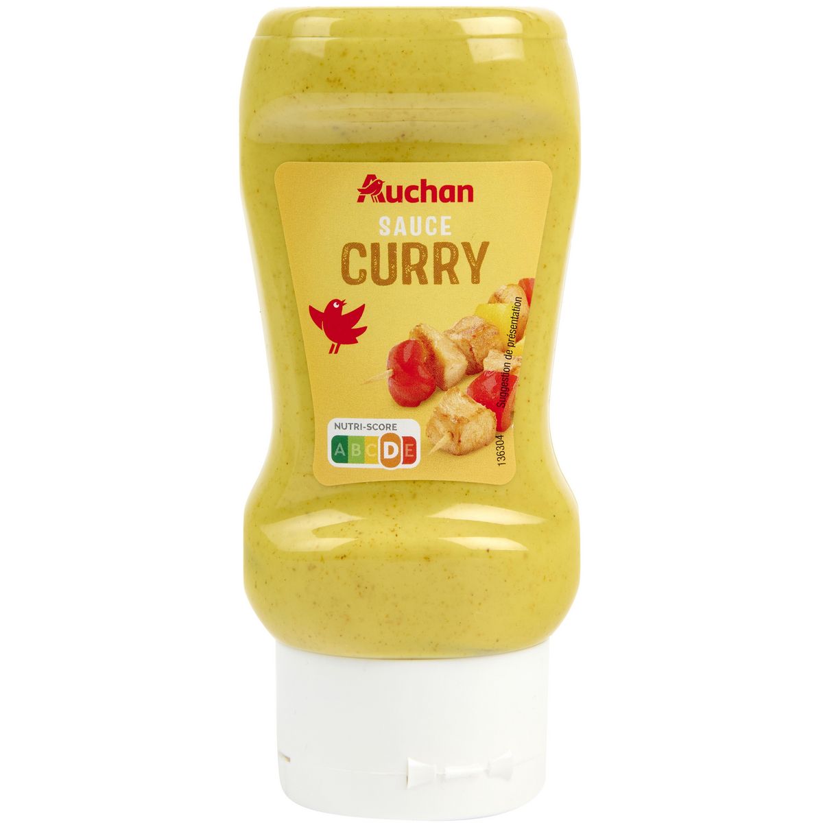Ingrédients : Eau, huile de colza, vinaigre d'alcool, sucre, amidon de maïs, jaune d'OEUF issu de poules élevées en plein air, épices curry 2,5% (dont MOUTARDE), sel, MOUTARDE (eau, graines de MOUTARDE, vinaigre d'alcool, acidifiant : acide citrique, curcuma), acidifiant : acide citrique, conservateur : acide sorbique, arôme naturel de cumin, épaississant : gomme xanthane, curcuma, colorant : lutéine.