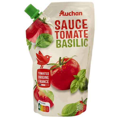 Ingrédients : Purée de tomates 95% (tomates origine France), huile d'olive vierge extra, basilic 1%, sucre, huiles végétales (contient tournesol et/ou colza), sel de Camargue.