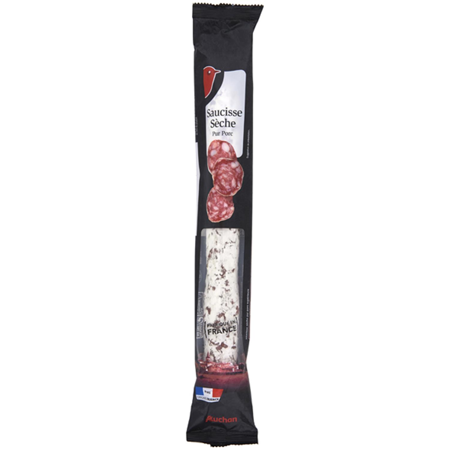 Saucisse seche nouvelle recette, élaborée avec de la viande d'origine France, fabriquée en France.
