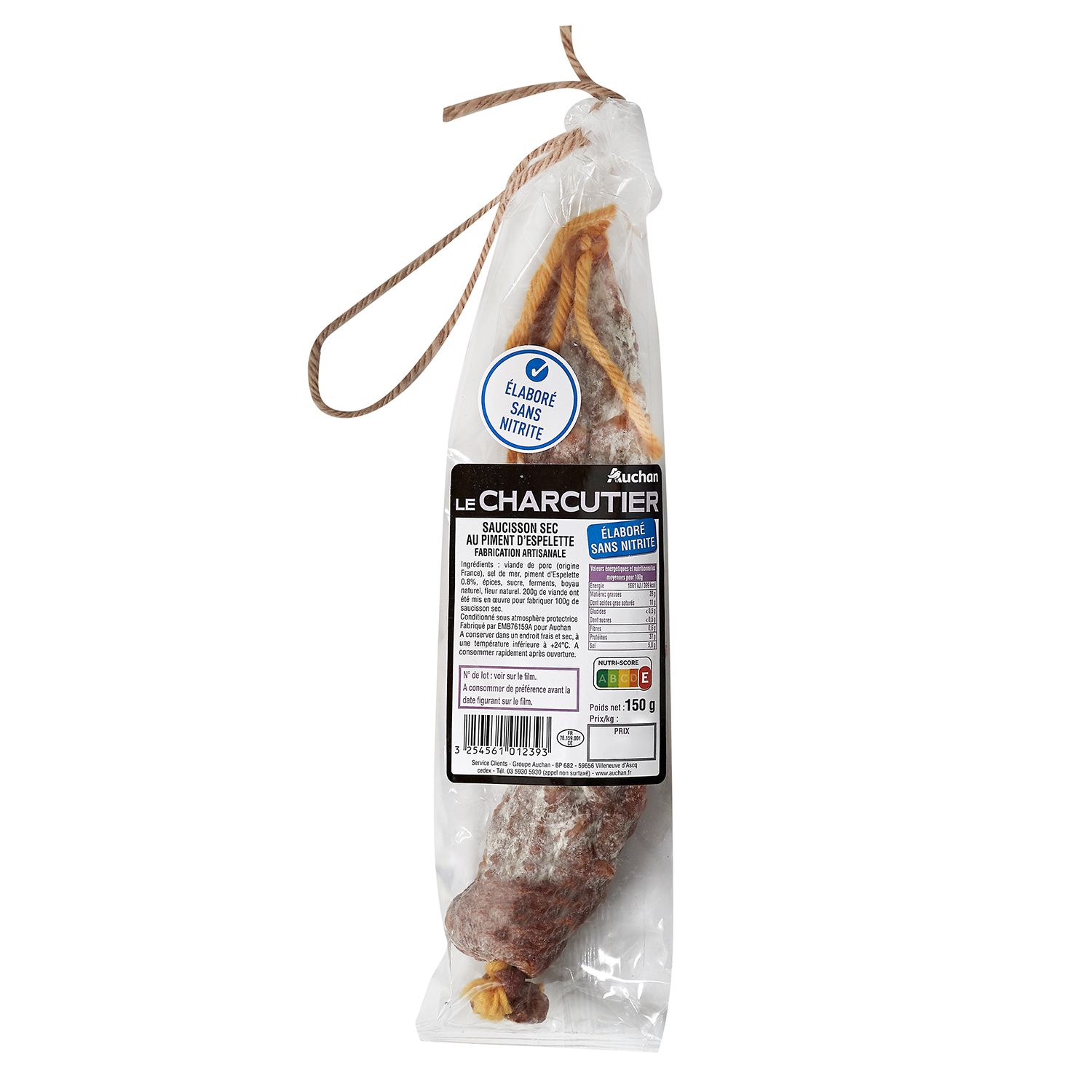 SAUCISSON SEC ELABORE SANS NITRATE ET NITRITE AU PIMENT D ESPELETTE