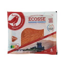 saumon Atlantique fumé (Salmo salar), élevé en Ecosse (Royaume-Uni), fumé au bois de hêtre.