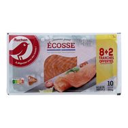 saumon Atlantique fumé (Salmo salar), élevé en Ecosse (Royaume-Uni), fumé au bois de hêtre. Produit décongelé - Ne pas recongeler
