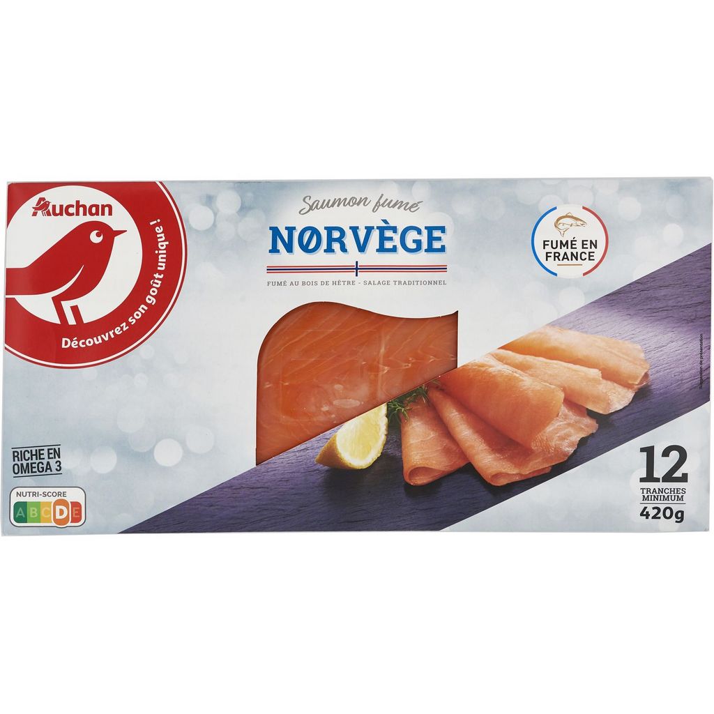 Saumon Atlantique fumé (Salmo salar), élevé en Norvège, fumé au bois de hêtre, décongelé - Ne pas recongeler